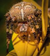 Вы везде его найдете, Он встречается в Европе, Обитает он в лесах, На кустарниках, в садах, На спине из пятен -крест, Не раздумывая съест Муху или комара, Эта нравится игра Пауку-крестовику, Жертву схватит на лету Паутинкою своей, Подкрадется быстро к ней, И утащит в уголок, Съест и преподаст урок Для других мух, комаров, Что не видят пауков, Попадают глупо в сети Паутины. Не спастись! Так, что рядом не носись!